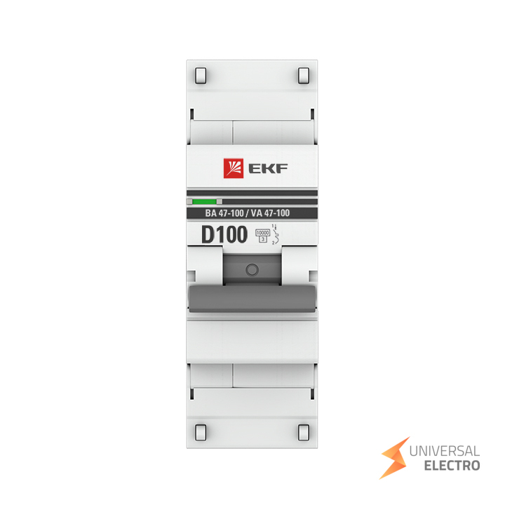 Автоматический выключатель 1P 100А (D) 10kA ВА 47-100 EKF PROxima предназначен для защиты электрических цепей от перегрузок и коротких замыканий. Обладает характеристикой срабатывания типа D, что делает его подходящим для цепей с высокими пусковыми токами. Выключатель рассчитан на номинальный ток 100А и способен выдерживать ток короткого замыкания до 10kA.