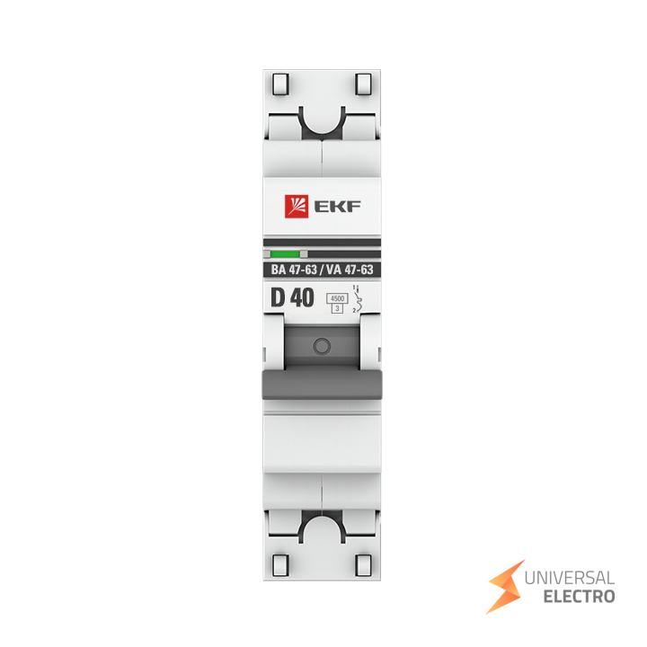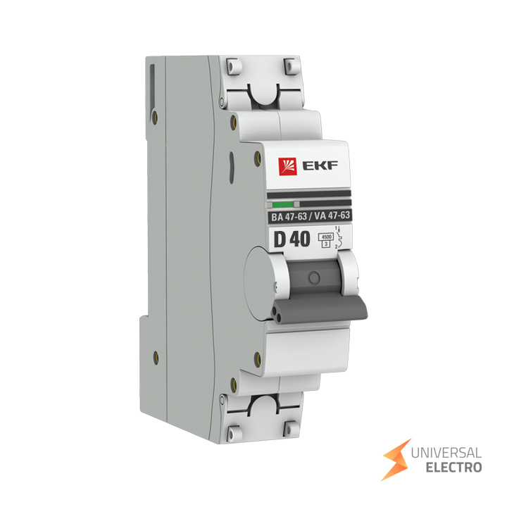 Автоматический выключатель 1P 40А (D) 4,5kA ВА 47-63 EKF PROxima предназначен для защиты электрических цепей от перегрузок и коротких замыканий. Он имеет номинальный ток 40 ампер и рассчитан на отключающую способность 4,5 кА. Тип характеристики D делает его подходящим для цепей с высокими пусковыми токами. Выключатель используется в жилых и коммерческих зданиях.