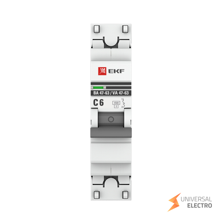 Автоматический выключатель 1-полюсный на 6 ампер с характеристикой срабатывания типа C и предельной отключающей способностью 4,5 кА. Модель ВА 47-63 серии EKF PROxima предназначена для защиты электрических цепей от перегрузок и коротких замыканий. Подходит для использования в бытовых и промышленных электроустановках.