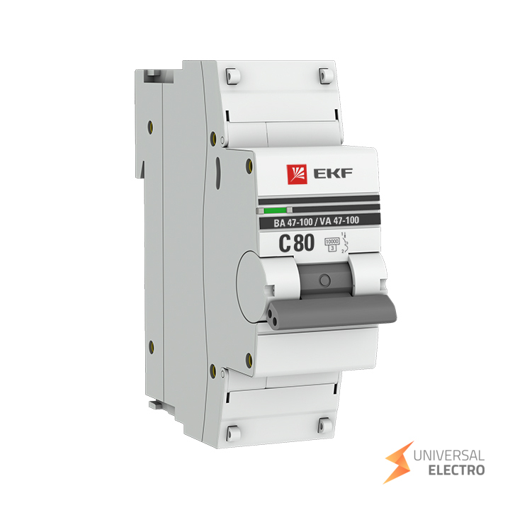 Автоматический выключатель 1P 80А (C) 10kA серии ВА 47-100 от EKF PROxima предназначен для защиты электрических цепей от перегрузок и коротких замыканий. Он рассчитан на номинальный ток 80 ампер и обладает характеристикой срабатывания типа C. Выключатель способен выдерживать ток короткого замыкания до 10 кА, что делает его подходящим для использования в промышленных и коммерческих установках.