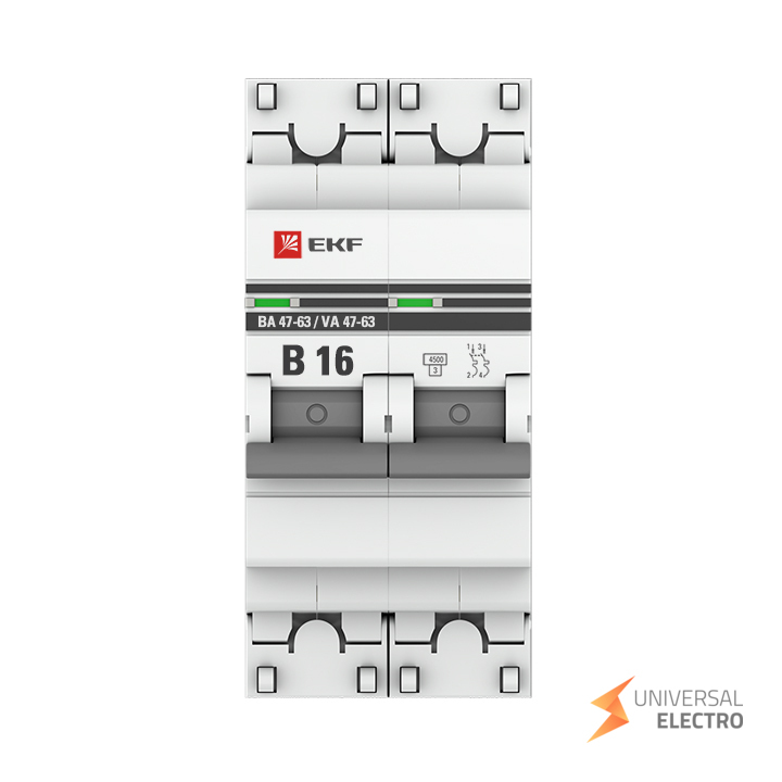 Автоматический выключатель 2P 16А (В) 4,5kA ВА 47-63 EKF PROxima предназначен для защиты электрических цепей от перегрузок и коротких замыканий. Он оснащен двумя полюсами и рассчитан на номинальный ток 16 ампер. Максимальная отключающая способность составляет 4,5 кА. Этот выключатель подходит для использования в жилых и коммерческих помещениях.