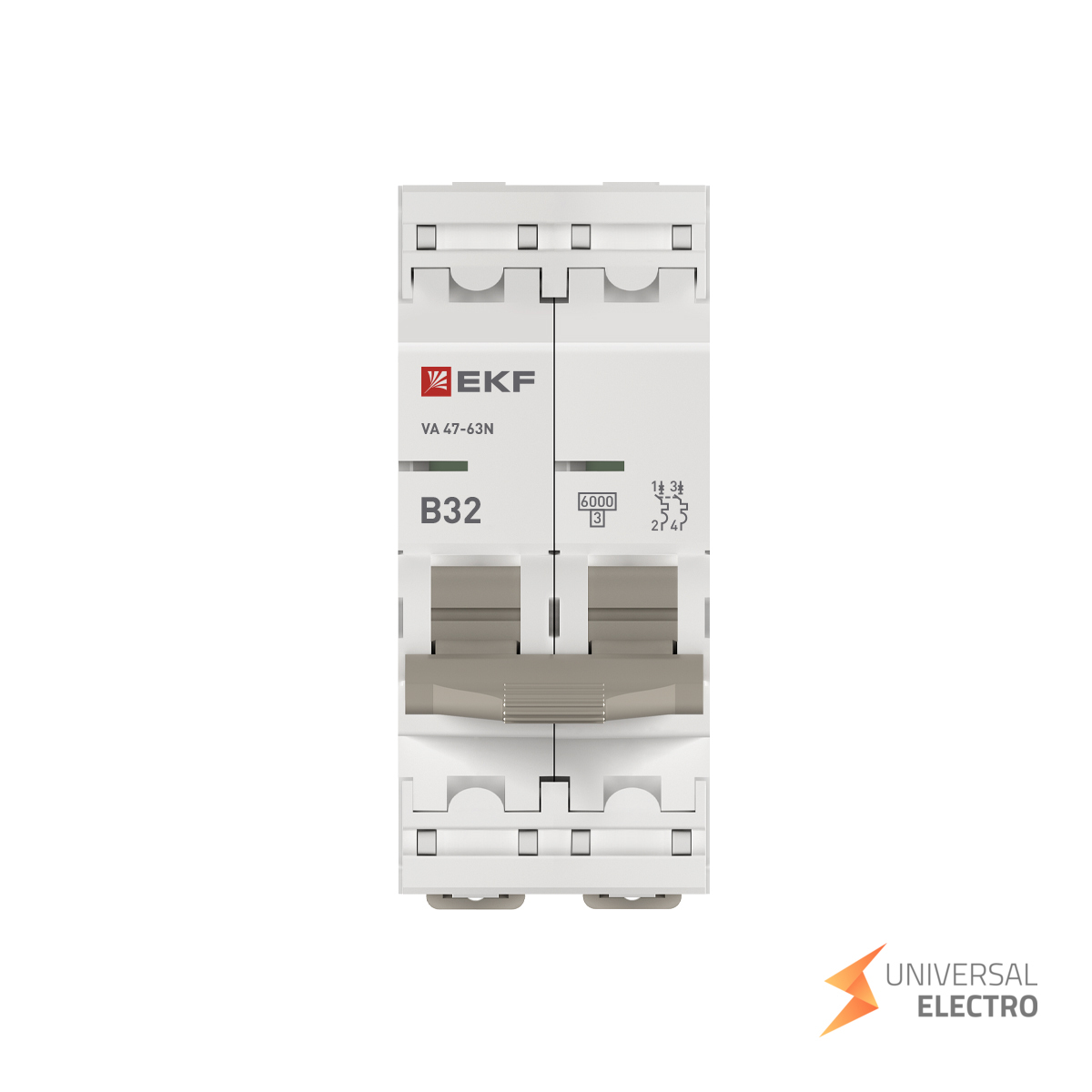 Автоматический выключатель 2P 32А (B) 6кА ВА 47-63N EKF PROxima предназначен для защиты электрических цепей от перегрузок и коротких замыканий. Он оснащен двухполюсной конструкцией, что обеспечивает надежное отключение цепи при аварийных ситуациях. Устройство рассчитано на номинальный ток 32А и обладает отключающей способностью 6кА, что делает его подходящим для использования в бытовых и промышленных сетях.
