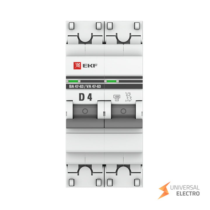 Автоматический выключатель 2P 4А (D) 4,5kA ВА 47-63 EKF PROxima предназначен для защиты электрических цепей от перегрузок и коротких замыканий. Двухполюсная конструкция обеспечивает надежное отключение в случае аварийных ситуаций. Номинальный ток составляет 4 ампера, а предельная отключающая способность — 4,5 кА. Класс характеристики D позволяет использовать его в цепях с высокими пусковыми токами.