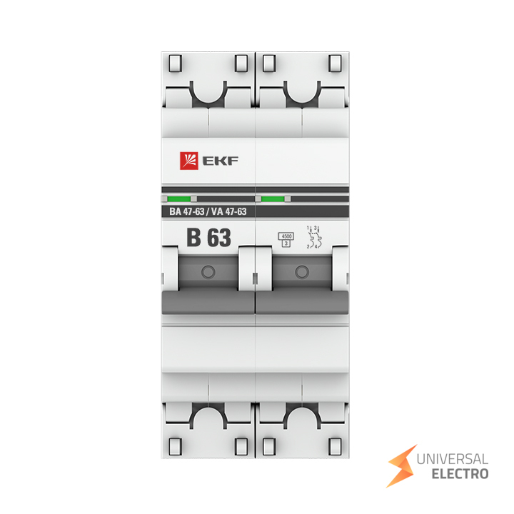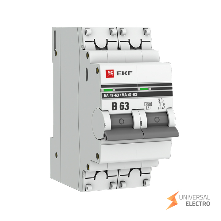 Автоматический выключатель 2P 63А (В) 4,5kA ВА 47-63 EKF PROxima предназначен для защиты электрических цепей от перегрузок и коротких замыканий. Он оснащен двумя полюсами и рассчитан на номинальный ток до 63 ампер. Устройство способно выдерживать ток короткого замыкания до 4,5 килоампер. Подходит для использования в жилых и коммерческих помещениях.
