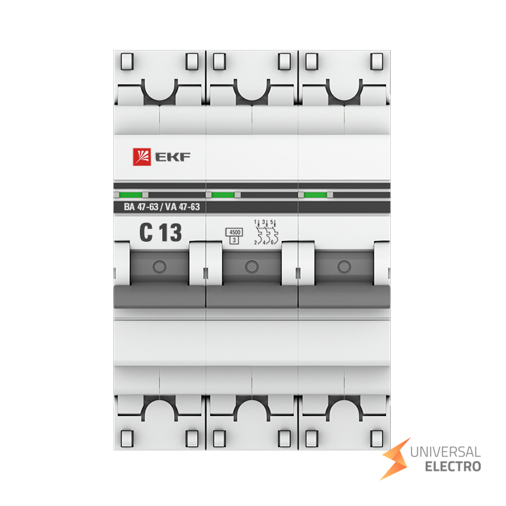Автоматический выключатель EKF PROxima ВА 47-63 предназначен для защиты электрических цепей от перегрузок и коротких замыканий. Модель с тремя полюсами и номинальным током 13А имеет характеристику срабатывания типа C, что делает её подходящей для применения в жилых и коммерческих зданиях. Максимальная отключающая способность составляет 4,5kA.