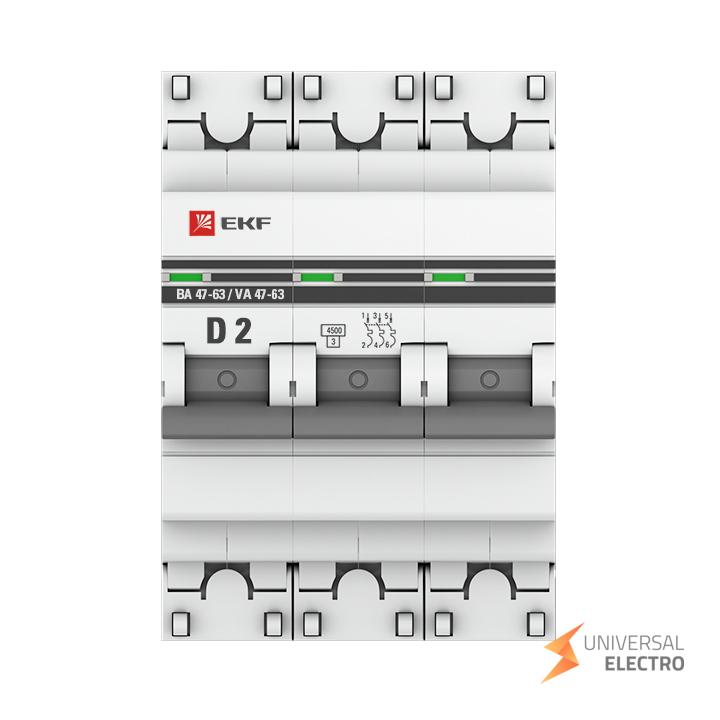 Автоматический выключатель 3P 2А (D) 4,5kA серии ВА 47-63 от EKF PROxima предназначен для защиты электрических цепей от перегрузок и коротких замыканий. Он оснащен тремя полюсами и рассчитан на номинальный ток 2 ампера. Устройство обеспечивает надежную работу в условиях промышленного и бытового применения, с отключающей способностью до 4,5 кА.