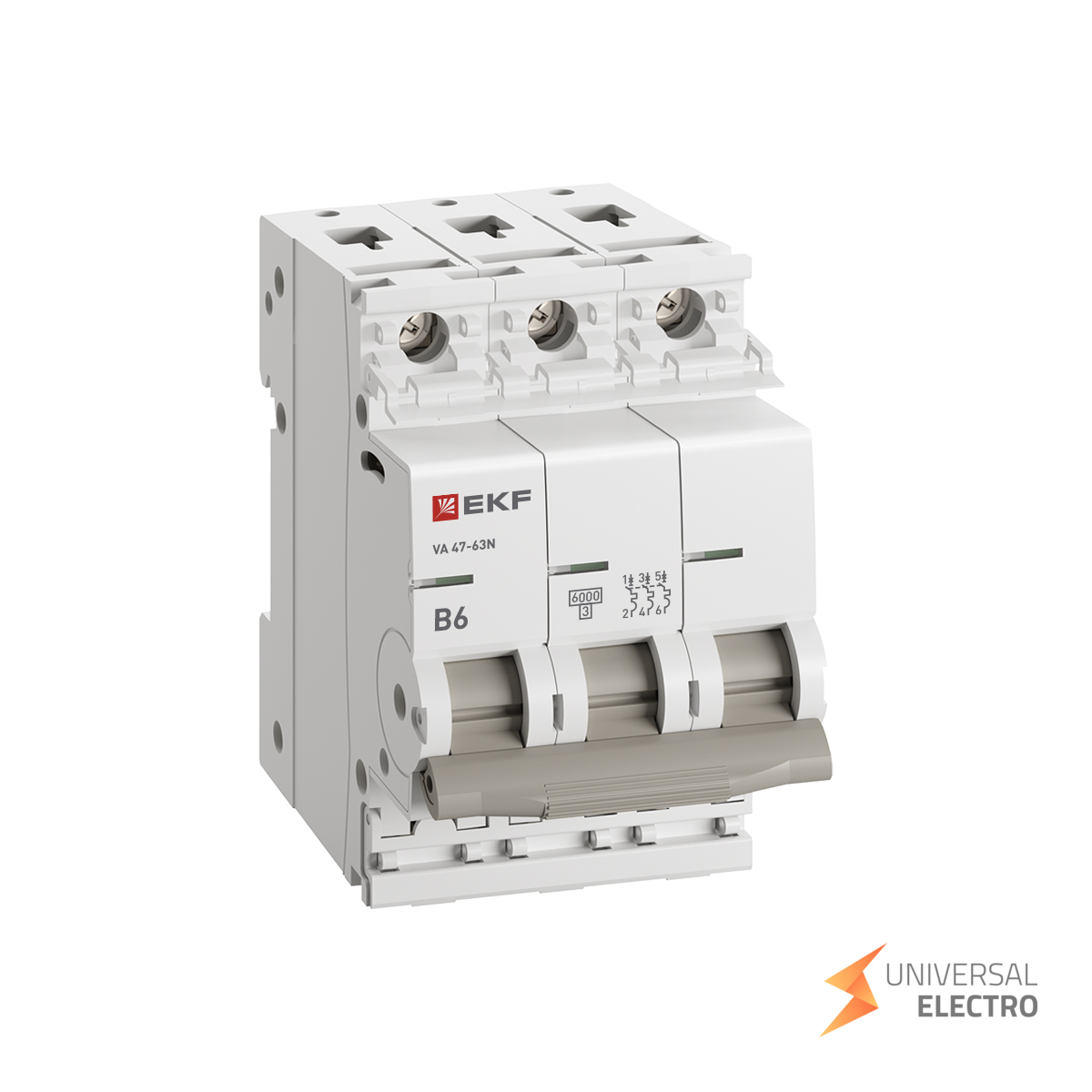 Автоматический выключатель 3P 6А (B) 6кА ВА 47-63N EKF PROxima предназначен для защиты электрических цепей от перегрузок и коротких замыканий. Трехполюсная конструкция позволяет использовать его в трехфазных системах. Номинальный ток 6А и характеристика срабатывания типа B делают его подходящим для защиты цепей с умеренными пусковыми токами. Способен отключать токи короткого замыкания до 6кА.
