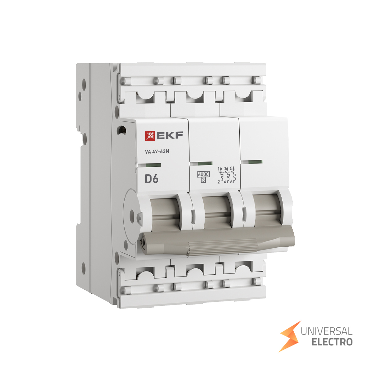 Автоматический выключатель 3P 6А (D) 6кА ВА 47-63N EKF PROxima предназначен для защиты электрических цепей от перегрузок и коротких замыканий. Он оснащен тремя полюсами и рассчитан на номинальный ток 6А. Характеристика D позволяет использовать его в цепях с высокими пусковыми токами. Максимальная отключающая способность составляет 6кА, что обеспечивает надежную защиту в промышленных и бытовых условиях.