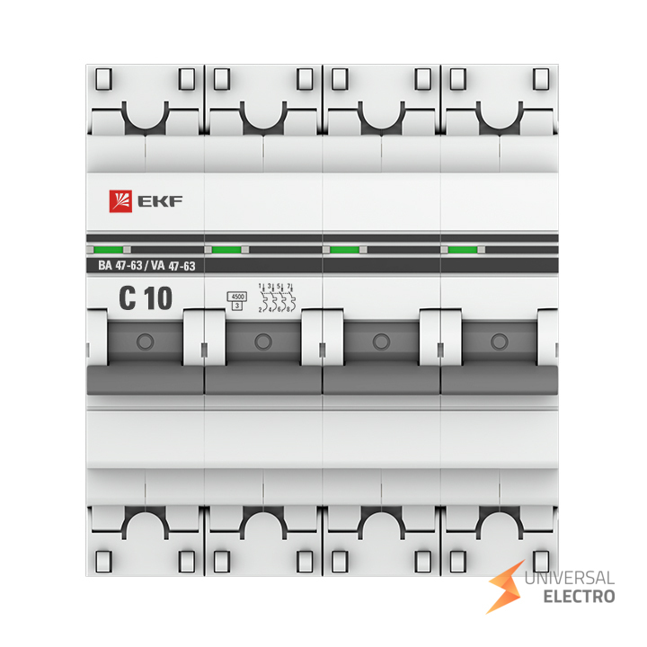 Автоматический выключатель 4P 10А (C) 4,5kA ВА 47-63 EKF PROxima предназначен для защиты электрических цепей от перегрузок и коротких замыканий. Обеспечивает надежную работу в четырехполюсных системах. Подходит для использования в жилых и коммерческих помещениях. Обладает характеристикой срабатывания типа C, что делает его оптимальным для цепей с умеренными пусковыми токами.