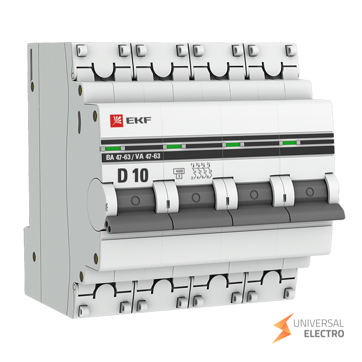 Автоматический выключатель 4P 10А (D) 4,5kA серии ВА 47-63 EKF PROxima предназначен для защиты электрических цепей от перегрузок и коротких замыканий. Он оснащен четырьмя полюсами и рассчитан на номинальный ток 10 ампер. Устройство подходит для использования в промышленных и бытовых установках, обеспечивая надежную защиту и стабильность работы электрических систем.