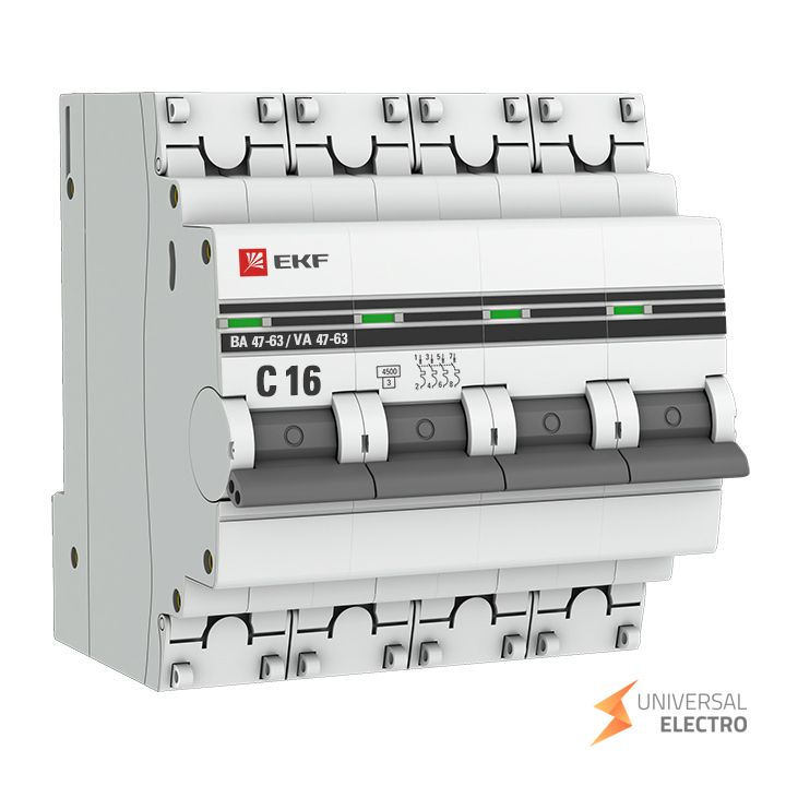 Автоматический выключатель 4P 16А (C) 4,5kA ВА 47-63 EKF PROxima предназначен для защиты электрических цепей от перегрузок и коротких замыканий. Он оснащен четырьмя полюсами и рассчитан на номинальный ток 16 ампер. Устройство обеспечивает отключающую способность 4,5 кА, что делает его подходящим для использования в промышленных и коммерческих установках.