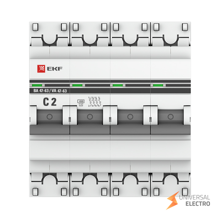 Автоматический выключатель 4P 2А (C) 4,5kA ВА 47-63 EKF PROxima предназначен для защиты электрических цепей от перегрузок и коротких замыканий. Он имеет четыре полюса и номинальный ток 2 ампера. Серия PROxima обеспечивает надежную эксплуатацию и долговечность устройства. Выключатель подходит для использования в бытовых и промышленных электроустановках.