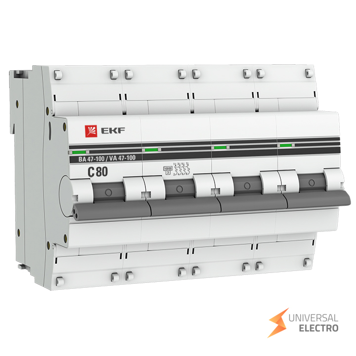 Автоматический выключатель 4P 80А (C) 10kA ВА 47-100 EKF PROxima предназначен для защиты электрических цепей от перегрузок и коротких замыканий. Он имеет четыре полюса и рассчитан на номинальный ток 80 ампер. Класс характеристики "C" позволяет использовать его в цепях с умеренными пусковыми токами. Максимальная отключающая способность составляет 10 кА, что обеспечивает надежную работу в условиях повышенной нагрузки.