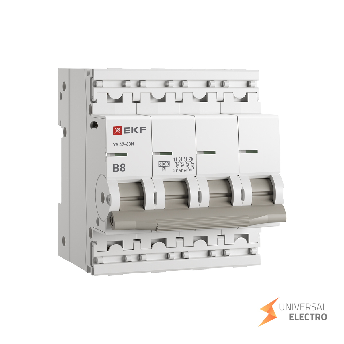 Автоматический выключатель 4P 8А (B) 6кА ВА 47-63N из серии EKF PROxima предназначен для защиты электрических цепей от перегрузок и коротких замыканий. Обладает четырьмя полюсами и рассчитан на номинальный ток 8 ампер. Этот выключатель обеспечивает надежную и эффективную защиту в бытовых и промышленных электроустановках.