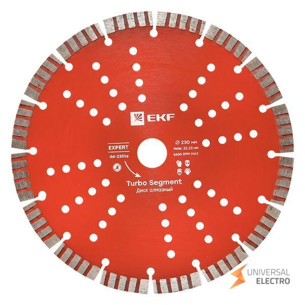 Диск алмазный Turbo Segment EKF Expert предназначен для резки различных строительных материалов, таких как бетон, кирпич и камень. Диаметр диска составляет 230 мм, а посадочный размер — 22,23 мм. Особая конструкция сегментов обеспечивает эффективное удаление пыли и уменьшает нагревание. Подходит для использования с углошлифовальными машинами и обеспечивает высокую скорость резки и долговечность.