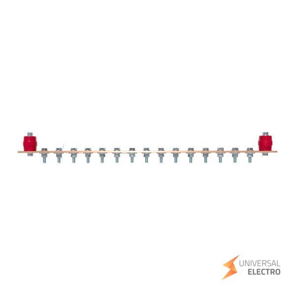 Главная заземляющая шина ГЗШ-15 Cu EKF предназначена для объединения и распределения заземляющих проводников в электрических установках. Она оснащена изоляторами и рассчитана на 15 подключений. Применяется в распределительных щитах и других электротехнических системах для обеспечения надежного заземления и безопасности эксплуатации оборудования.