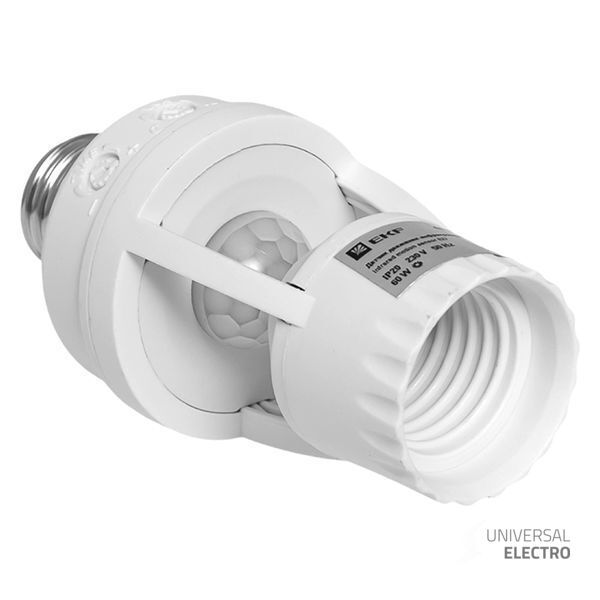 Инфракрасный датчик движения EKF PROxima предназначен для автоматического управления освещением. Он поддерживает лампы с цоколем E27 мощностью до 60 Вт. Угол обзора составляет 360 градусов, что обеспечивает полное покрытие зоны. Максимальная дальность обнаружения движения - до 7 метров. Степень защиты IP20 делает его подходящим для использования в закрытых помещениях.