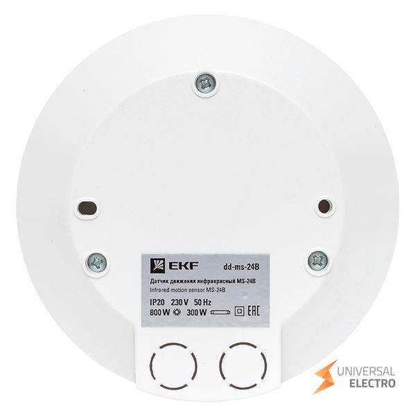 Потолочный инфракрасный датчик движения EKF MS-24B предназначен для автоматического управления освещением в помещениях. Он обеспечивает обнаружение движения в радиусе до 6 метров и охватывает угол в 360 градусов. Максимальная нагрузка составляет 800 Вт. Устройство имеет степень защиты IP20, что делает его подходящим для использования в сухих помещениях.