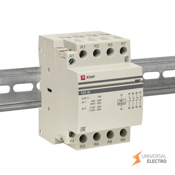 Контактор модульный КМ 40А 4NC от EKF PROxima предназначен для управления электрическими цепями с номинальным током до 40 ампер. Конструкция включает четыре нормально замкнутых контакта, что обеспечивает надежное размыкание цепи. Устройство монтируется на стандартную DIN-рейку, что упрощает установку в распределительные щиты. Применяется в системах автоматизации и управления электроснабжением.