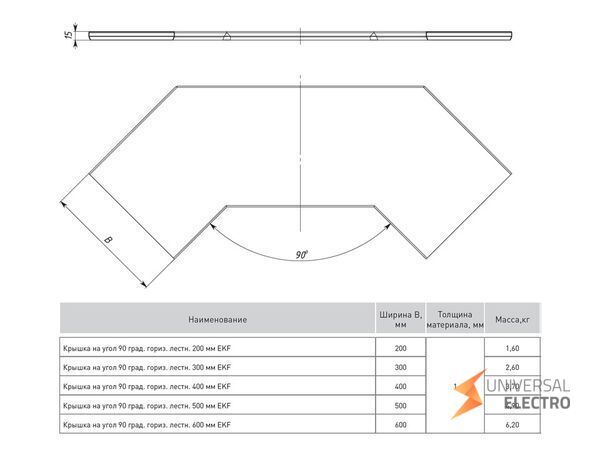 Крышка на угол 90 градусов предназначена для горизонтальных лестничных конструкций с шириной 600 мм. Изделие используется для защиты и эстетичного оформления угловых соединений в кабельных трассах. Подходит для применения в промышленных и коммерческих объектах, обеспечивая надежное крепление и защиту кабелей от внешних воздействий.