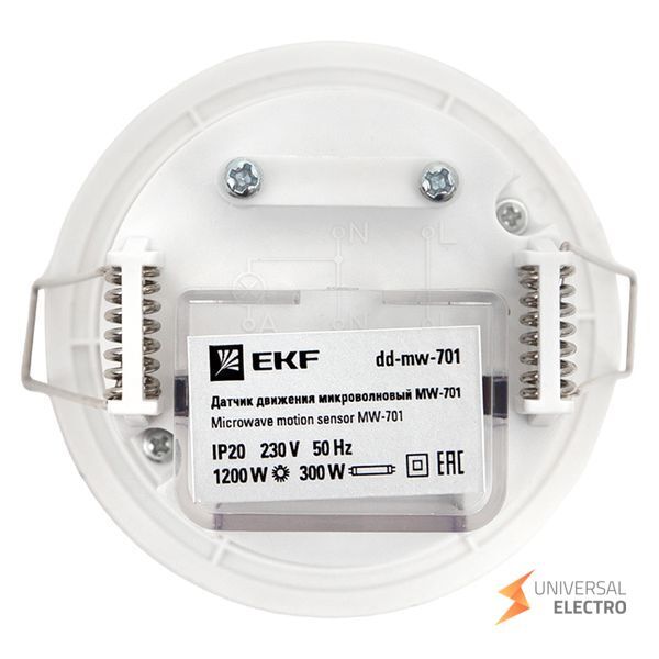 Микроволновый датчик движения MW-701 EKF PROxima предназначен для автоматического управления освещением и другими устройствами. Обеспечивает обнаружение движения в радиусе до 20 метров с углом обзора 360 градусов. Подходит для использования в помещениях с уровнем защиты IP20. Максимальная нагрузка составляет 1200 Вт. Установка датчика позволяет повысить энергоэффективность и удобство эксплуатации систем освещения.