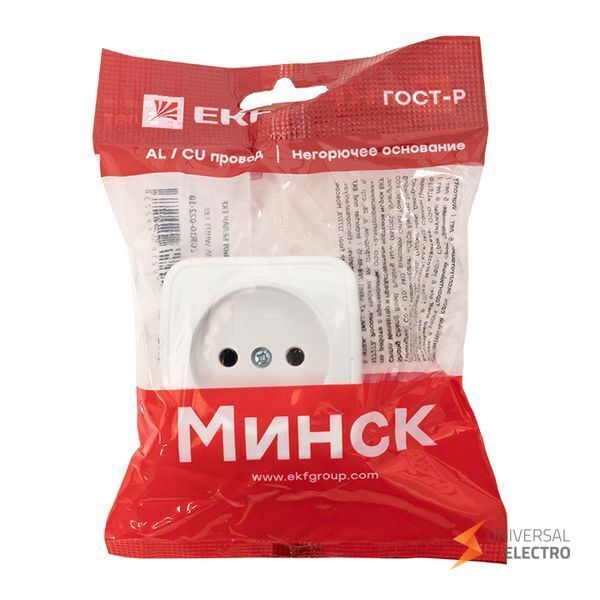 Розетка Минск 1-местная открытой проводки на 10А, выполненная в белом цвете, предназначена для установки в жилых и коммерческих помещениях. Модель из серии EKF Basic не оснащена заземлением, что делает её подходящей для использования в сетях, где заземление не требуется. Простая конструкция обеспечивает лёгкость монтажа и эксплуатации.