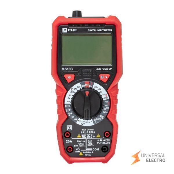 Цифровой мультиметр MS18C EKF Expert предназначен для измерения различных электрических величин, таких как напряжение, ток и сопротивление. Он оснащен ЖК-дисплеем для удобного считывания данных. Прибор подходит для использования в бытовых и профессиональных условиях, обеспечивая точные и надежные измерения. Компактный дизайн и простота в эксплуатации делают его удобным инструментом для электриков и инженеров.