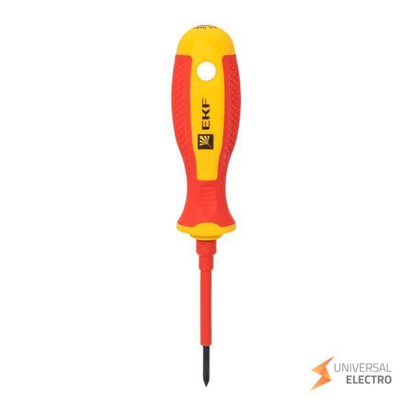 Отвертка Expert PH0x60 мм 1000В EKF предназначена для работы с электрическими компонентами под напряжением до 1000 В. Инструмент оснащен изолированной рукояткой для обеспечения безопасности при работе с электричеством. Отвертка имеет стандартный шлиц PH0 и длину стержня 60 мм, что делает её подходящей для точных и аккуратных работ в электроустановках.