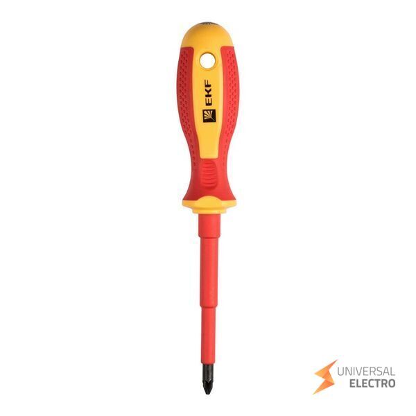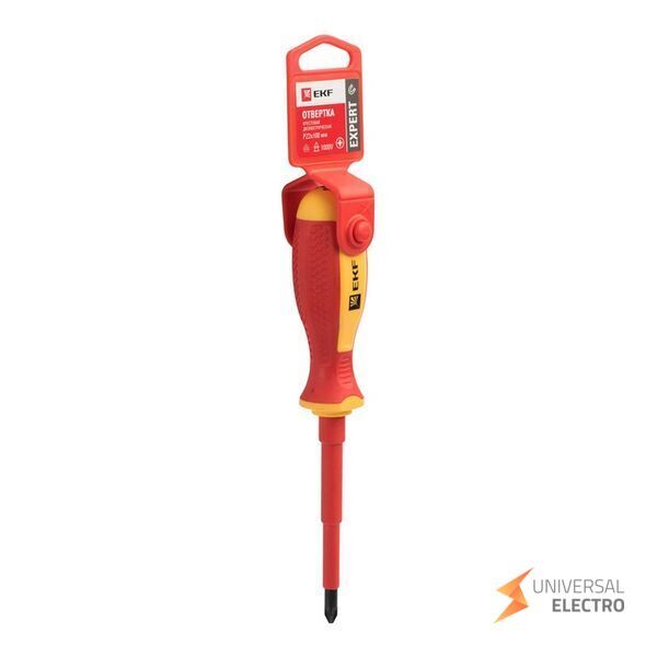 Отвертка Expert PZ2x100 мм 1000В EKF предназначена для работы с крепежными элементами типа PZ2. Она обеспечивает безопасную эксплуатацию в условиях высокого напряжения до 1000 В, что делает её подходящей для электромонтажных работ. Длина стержня составляет 100 мм, что позволяет работать в труднодоступных местах.