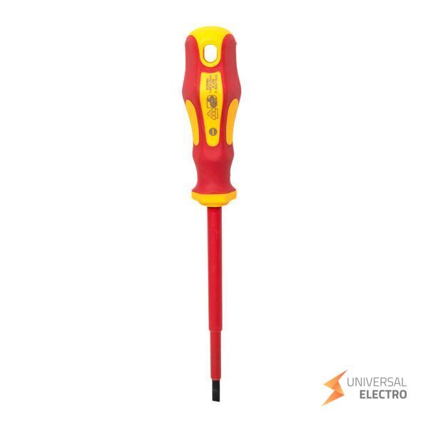 Отвертка Expert SL5,5x125 мм 1000В EKF предназначена для работы с электрическими системами под напряжением до 1000 вольт. Она оснащена плоским шлицем шириной 5,5 мм и длиной стержня 125 мм. Изолированная рукоятка обеспечивает безопасность при выполнении электромонтажных работ, предотвращая риск поражения электрическим током.