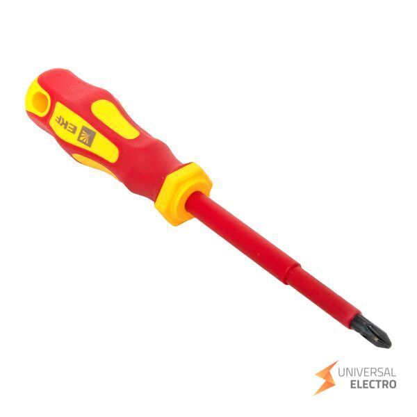 Отвертка Master PH2x100 мм 1000В EKF предназначена для работы с крепежом типа Phillips PH2. Изолированная конструкция обеспечивает безопасность при работе с электрическими системами до 1000 вольт. Длина стержня 100 мм позволяет добраться до труднодоступных мест. Инструмент подходит для профессионального и бытового использования в электромонтажных работах.