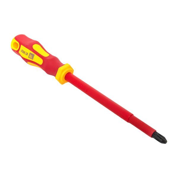Отвертка Master PH3x150 мм 1000В EKF предназначена для работы с крепежом типа PH3. Длина стержня составляет 150 мм, что обеспечивает удобство при работе в труднодоступных местах. Инструмент сертифицирован для работы под напряжением до 1000 В, что делает его безопасным для электромонтажных работ. Подходит для профессионального использования в электроустановках.