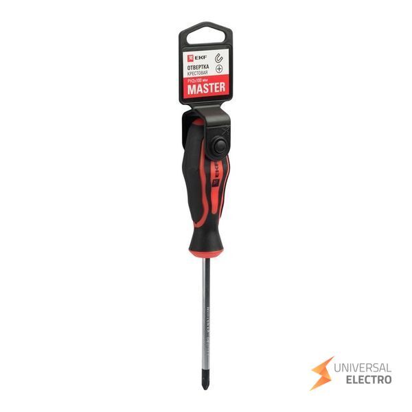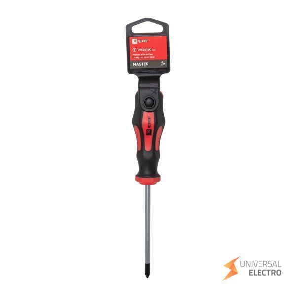 Отвертка Master PZ2x100 мм EKF предназначена для работы с крепежом, имеющим шлиц типа Pozidriv. Длина стержня составляет 100 мм, что делает ее удобной для использования в труднодоступных местах. Инструмент подходит для профессионального и бытового применения, обеспечивая надежное сцепление с крепежными элементами.
