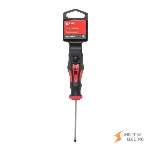 Отвертка Master SL3,5x75 мм EKF предназначена для работы с крепежными элементами с прямым шлицем. Она оснащена стержнем длиной 75 мм и рабочей частью шириной 3,5 мм, что обеспечивает удобство в использовании при монтаже и демонтаже различных деталей. Подходит для применения в электротехнических и бытовых работах.