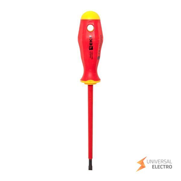 Отвертка Professional SL5,5х1 мм VDE 1000В от EKF предназначена для работы с электрическими системами под напряжением до 1000 В. Она оснащена плоским шлицем шириной 5,5 мм и толщиной 1 мм. Инструмент сертифицирован по стандарту VDE, что гарантирует его безопасность и надежность при использовании в электромонтажных работах.