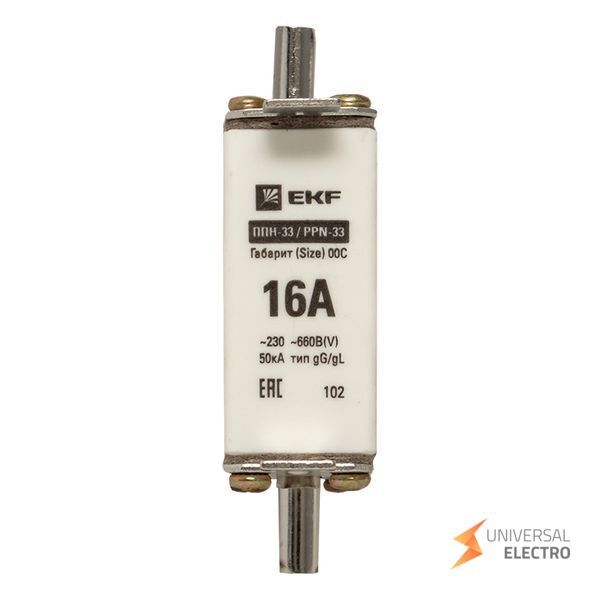 Плавкая вставка ППН-33 100/16А габарит 00С EKF предназначена для защиты электрических цепей от перегрузок и коротких замыканий. Она используется в низковольтных распределительных системах и обеспечивает надежную защиту оборудования. Габарит 00С указывает на компактные размеры, что позволяет использовать вставку в ограниченном пространстве. Продукт подходит для применения в промышленных и коммерческих установках.