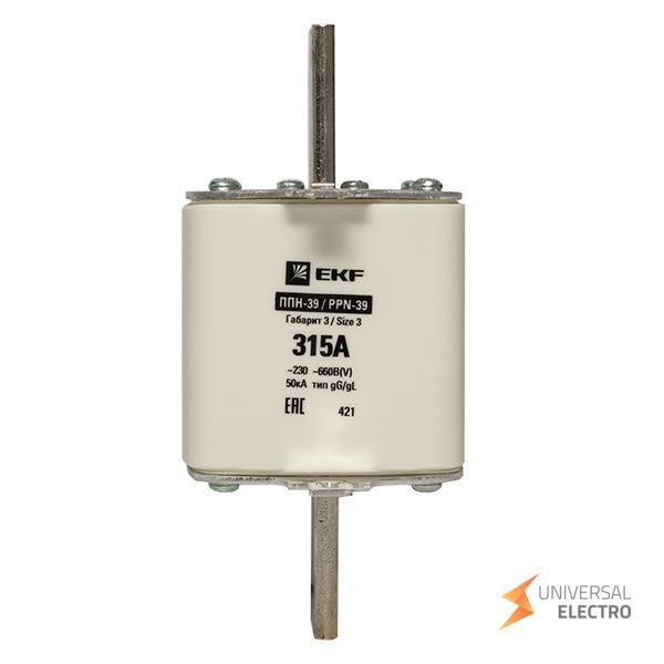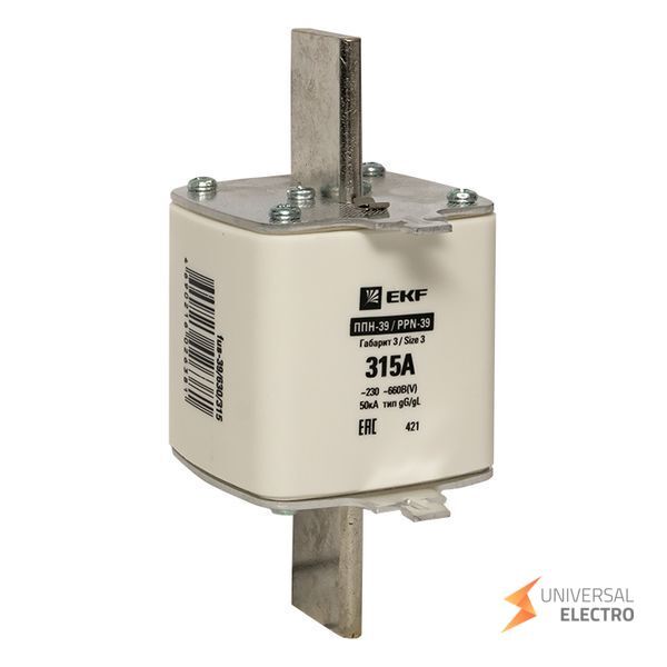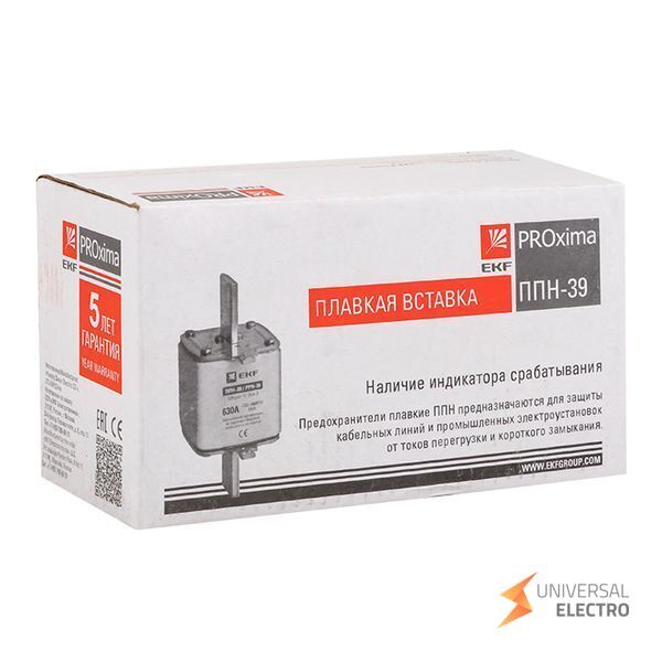 Плавкая вставка ППН-39 630/315А габарит 3 от EKF предназначена для защиты электрических цепей от перегрузок и коротких замыканий. Она обеспечивает надежную работу в промышленных и коммерческих установках. Изделие соответствует стандартам безопасности и может использоваться в различных электротехнических системах.