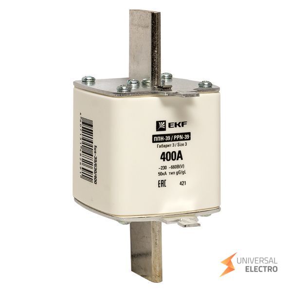 Плавкая вставка ППН-39 630/400А габарит 3 EKF предназначена для защиты электрических цепей от перегрузок и коротких замыканий. Она применяется в промышленных и коммерческих установках. Вставка обеспечивает надежную и быструю реакцию на аварийные ситуации, что способствует стабильной работе оборудования. Габарит 3 указывает на совместимость с определенными типами держателей и панелей.
