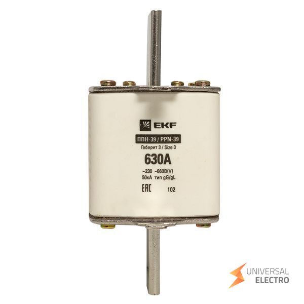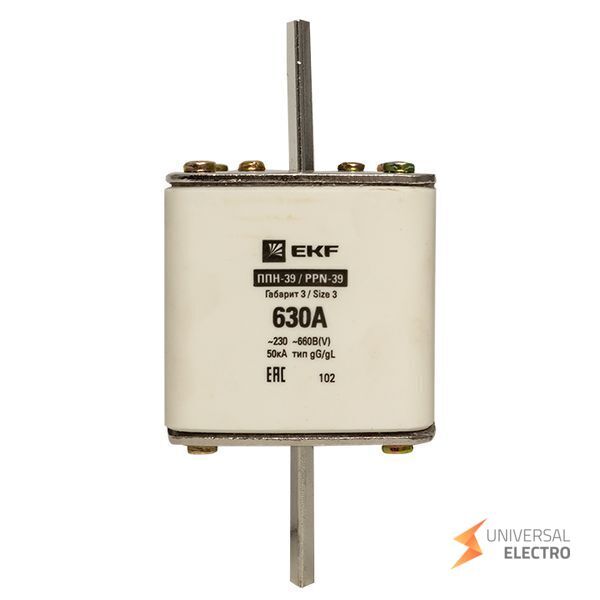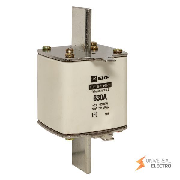 Плавкая вставка ППН-39 630/630А габарит 3 EKF предназначена для защиты электрических цепей от перегрузок и коротких замыканий. Она используется в промышленных и коммерческих установках. Обеспечивает надежную защиту оборудования, предотвращая повреждения, вызванные чрезмерными токами. Габарит 3 указывает на совместимость с определенными типами держателей и распределительных устройств.