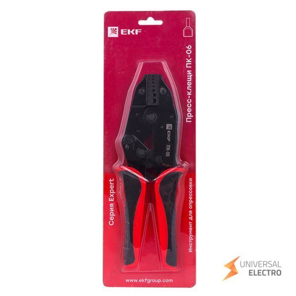Пресс-клещи ПК-06 предназначены для опрессовки кабельных наконечников типа НШвИ2 в диапазоне сечений от 2х0,5 до 2х6,0 мм². Инструмент обеспечивает надежное соединение и долговечность контактов в электрических цепях. Подходит для использования в электромонтажных работах и при сборке распределительных щитов. Обладает эргономичной конструкцией для удобства работы.