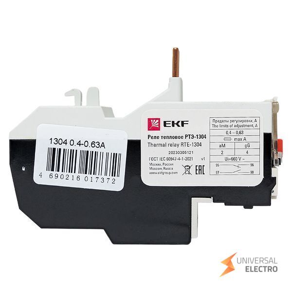Реле тепловое РТЭ-1304 0,4-0,63А EKF PROxima предназначено для защиты электродвигателей и других электрических устройств от перегрузок и перегрева. Оно автоматически отключает питание при превышении допустимого тока в диапазоне 0,4-0,63 ампер. Устройство обеспечивает надежную защиту и продлевает срок службы оборудования, предотвращая повреждения от перегрева.