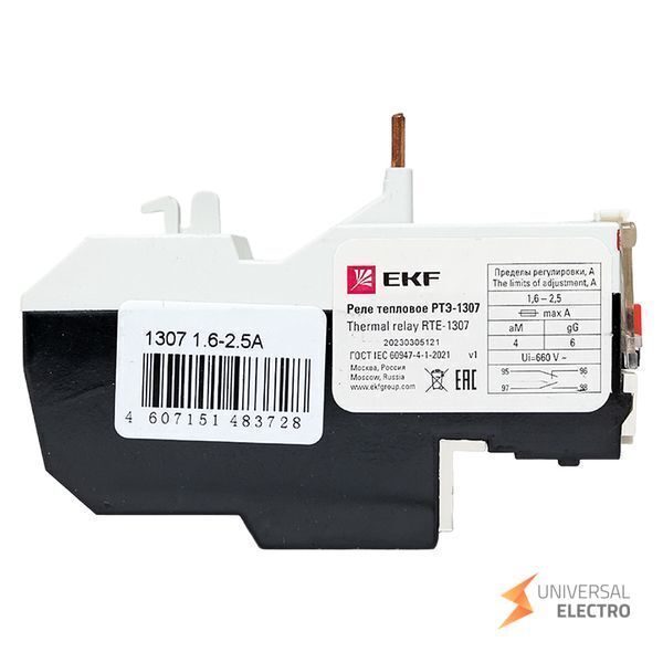 Реле тепловое РТЭ-1307 от EKF PROxima предназначено для защиты электродвигателей от перегрузок и перегрева. Оно работает в диапазоне токов от 1,6 до 2,5 ампер. Устройство автоматически отключает питание при превышении допустимых температур, обеспечивая надежную защиту оборудования. Реле может быть использовано в промышленных и коммерческих установках.
