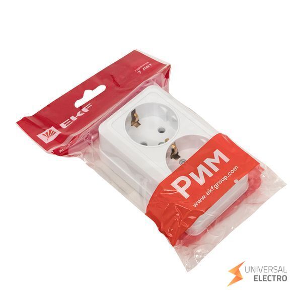 Двухместная розетка Рим от EKF предназначена для подключения электрических приборов в бытовых и коммерческих помещениях. Она рассчитана на ток до 16 ампер и оснащена заземлением для повышения безопасности эксплуатации. Белый цвет корпуса позволяет интегрировать розетку в различные интерьерные решения. Установка возможна в стандартные монтажные коробки.
