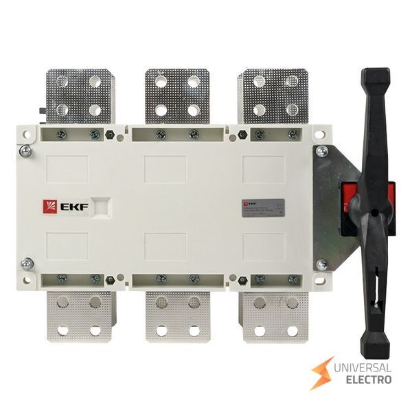Рубильник-переключатель PowerSwitch EKF на 1600A предназначен для управления и распределения электрической энергии в трехфазных системах. Он оснащен рукояткой управления и предназначен для прямой установки. Используется в промышленных и коммерческих электроустановках для обеспечения надежного переключения и защиты электрических цепей.