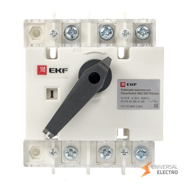 Рубильник-выключатель PowerSwitch EKF предназначен для управления электрическими цепями с номинальным током до 100 ампер. Устройство оснащено рукояткой управления и предназначено для прямой установки. Подходит для использования в промышленных и коммерческих электроустановках, обеспечивая надежное переключение и защиту электрических цепей. Конструкция предусматривает легкий доступ для обслуживания и замены компонентов.