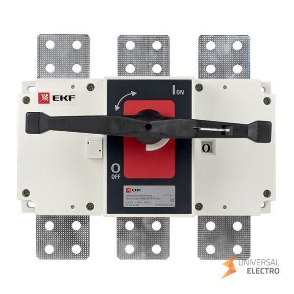 Рубильник-выключатель PowerSwitch EKF предназначен для коммутации электрических цепей с номинальным током до 1600A. Устройство оснащено рукояткой управления, обеспечивающей удобство эксплуатации. Конструкция предусматривает прямую установку, что упрощает монтаж в различных электротехнических системах. Подходит для использования в промышленных и коммерческих электроустановках, обеспечивая надежность и долговечность работы.