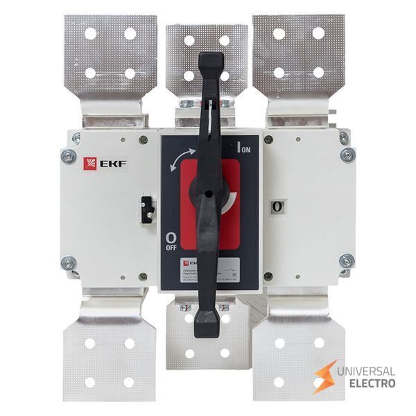 Рубильник-выключатель PowerSwitch EKF на 2500А предназначен для управления электрическими цепями в промышленных и коммерческих установках. Он оснащен рукояткой управления для удобства эксплуатации и рассчитан на прямую установку. Устройство поддерживает трехполюсное подключение, обеспечивая надежное размыкание и замыкание цепи, что делает его подходящим для использования в системах распределения электроэнергии.