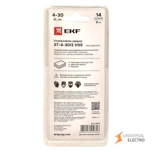 Ступенчатое сверло ST-4-30/2 HSS предназначено для сверления отверстий различных диаметров в металлах и других материалах. Изготовлено из быстрорежущей стали (HSS), что обеспечивает долговечность и устойчивость к износу. Имеет 14 ступеней, позволяющих выполнять сверление с высокой точностью и эффективностью. Подходит для использования в профессиональных и бытовых условиях.