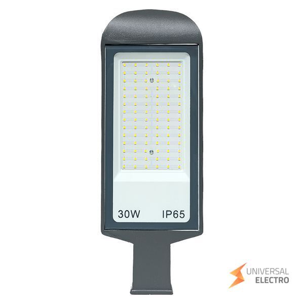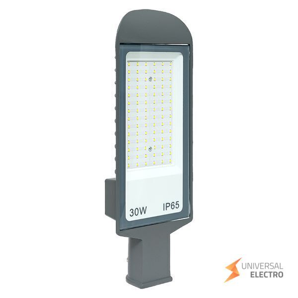 Светодиодный консольный светильник ДКУ-8001-Д мощностью 30 Вт предназначен для уличного освещения. Он обеспечивает яркий белый свет с цветовой температурой 5000K. Устройство имеет степень защиты IP65, что делает его устойчивым к пыли и влаге. Светильник подходит для установки на улицах, в парках и на промышленных объектах.