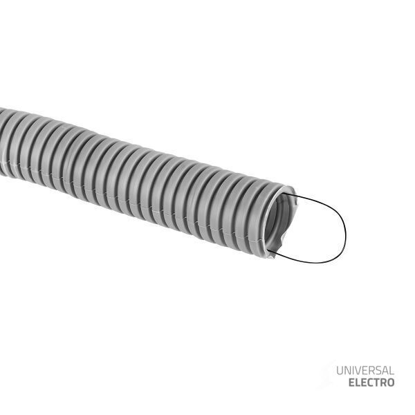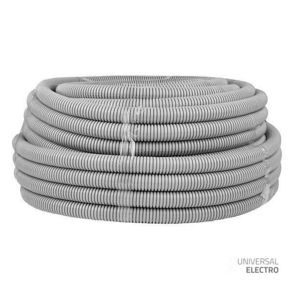 Гофрированная труба из поливинилхлорида (ПВХ) диаметром 32 мм предназначена для прокладки электрических проводов и кабелей. Она оснащена протяжкой, что облегчает процесс монтажа. Труба имеет длину 50 метров и выполнена в сером цвете. Используется в строительстве и электромонтаже для защиты и изоляции проводов от механических повреждений и воздействия окружающей среды.